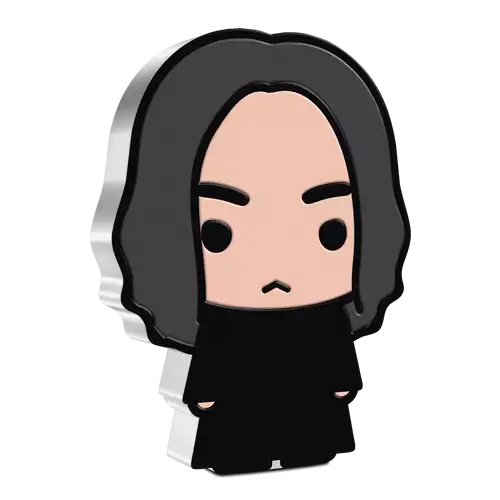 Hogwarts™ Potions Professor, SEVERUS SNAPE™, appears on this 1oz pure silver coin. It has been shaped and coloured to resemble the Dark Arts master - recognisable by his long, greasy hair, black robes and a scowl. On the obverse of the coin, you can see the Ian Rank Broadley effigy of Her Majesty Queen Elizabeth II, to confirm it as legal tender.